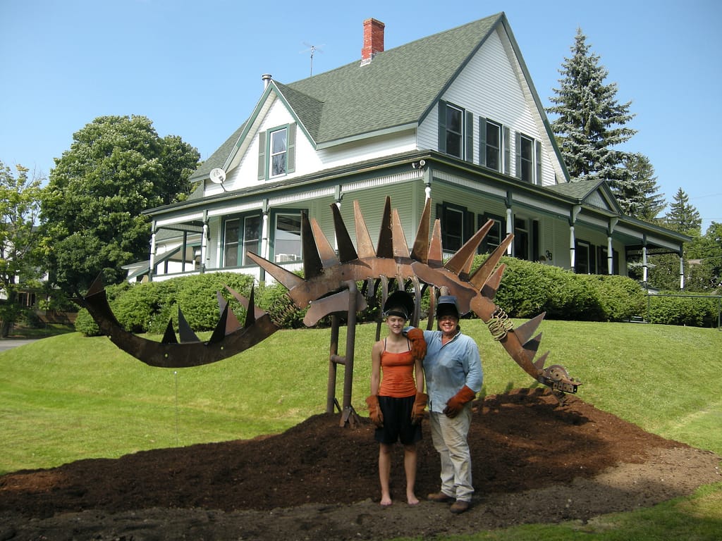 For the last 25 years, I have been welding gigantic sculptures with scrap metal from local junkyards to create unusual figures of people, animals, and even a life-sized T-Rex skeleton for our front yard at home. A life-sized stegosaurus in the front yard of our office has become a local landmark. And my daughter and I have big plans for a life-sized Pterodactyl that we have collaborated on, and that crouches menacingly in our front yard.