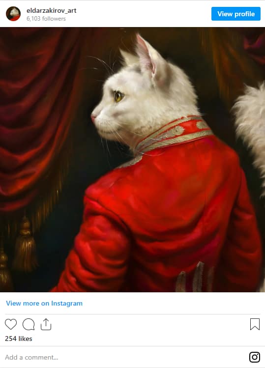 About a decade ago, it even commissioned artist Eldar Zakirov to create classical portraits of cats wearing traditional Russian aristocratic (or rather “aristoricatic”) dress for display in the Museum.